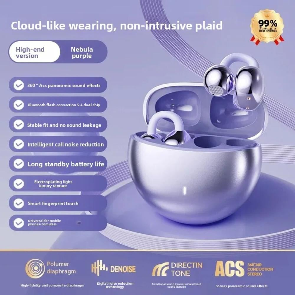 سماعات لاسلكية ذكية بتصميم أنثوي فخم على شكل حلق أذن، تجمع بين الجمال والأداء العالي.